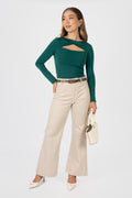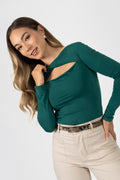 El Polo Paloma es una pieza moderna y elegante que eleva cualquier look con un diseño sutilmente llamativo. Su detalle de doblez en el escote junto al cut out aporta un toque actual y sofisticado sin perder la elegancia.