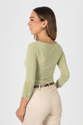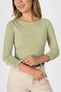 El Polo Zoe es un básico elevado que combina comodidad y elegancia en una sola prenda. Su diseño de manga 3/4 incorpora un delicado detalle de recogido en las mangas, aportando un toque sofisticado y diferente a un clásico imprescindible.