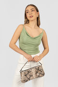 El Top Nicole está confeccionado en licra con textura y un ligero brillo, lo que le aporta un acabado moderno y sofisticado. Su diseño versátil lo convierte en esa prenda infaltable que eleva cualquier outfit y te acompaña en toda ocasión, desde un look casual chic hasta un conjunto más elegante.