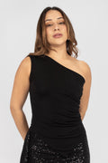 El Top Irina está confeccionado en licra con brillo, una tela elástica, cómoda y con un acabado luminoso que lo convierte en la opción perfecta para looks de noche. Su diseño resalta la figura y añade un toque sofisticado y moderno a cualquier outfit.
