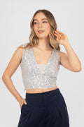 Nuestro Top Rossi de lentejuelas es la pieza statment que necesitas para elevar un look básico, perfecto para un cockatil o evento elegante. Compleméntalo con un palazo o pantalon y estarás lista para brillar!