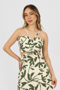 El Vestido Aurora es sinónimo de frescura y estilo. Confeccionado en lino estampado, una tela rígida y natural, este diseño realza la silueta gracias a sus cortes laterales que afinan visualmente la cintura. El detalle de amarre en la espalda permite ajustar el busto a tu medida, mientras que los reguladores en las tiras garantizan un calce perfecto. Además, el forro interno en el faldón aporta comodidad y una mejor caída.