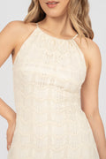 El vestido Grecia tiene una elasticidad ligera por su tejido de punto que se adapta cómodamente al cuerpo. Presenta una textura abierta y delicada, ideal para climas cálidos. Cuenta con forro de piel de durazno que aporta suavidad y confort al contacto con la piel. Es una prenda fresca, femenina y muy versátil, perfecta para llevar durante el día.