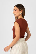 El Top Viena es un básico imprescindible que se adapta a todos tus looks. Confeccionado en tela rib stretch, ofrece una ajustada perfecta y cómoda que realza tu figura sin perder libertad de movimiento. Su diseño versátil lo convierte en una prenda ideal para cualquier ocasión: combínalo con una falda y sandalias para un estilo elegante, o con jeans y zapatillas para un look más casual.