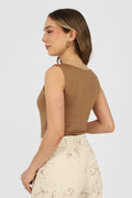 El Top Gala es un básico imprescindible que se adapta a todos tus looks. Confeccionado en tela suplex stretch, ofrece una ajustada perfecta y cómoda que realza tu figura sin perder libertad de movimiento. Su diseño versátil lo convierte en una prenda ideal para cualquier ocasión: combínalo con una falda y sandalias para un estilo elegante, o con jeans y zapatillas para un look más casual.