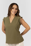 Una blusa de seda francesa con cuello V, delicada y fluida. El diseño de cuello en V realza la figura de manera sutil, mientras que la suavidad de la seda aporta un aire elegante y natural. Es una prenda que irradia sofisticación sin esfuerzo, perfecta para cualquier ocasión que requiera un toque de refinamiento discreto.