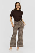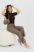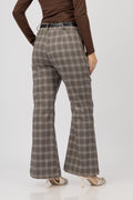 El Pantalón Alba está confeccionado en una suave lanilla a cuadros con un toque stretch que brinda comodidad sin sacrificar estilo. Su corte tipo flare ayuda a estilizar la figura y aporta un look moderno y favorecedor.
